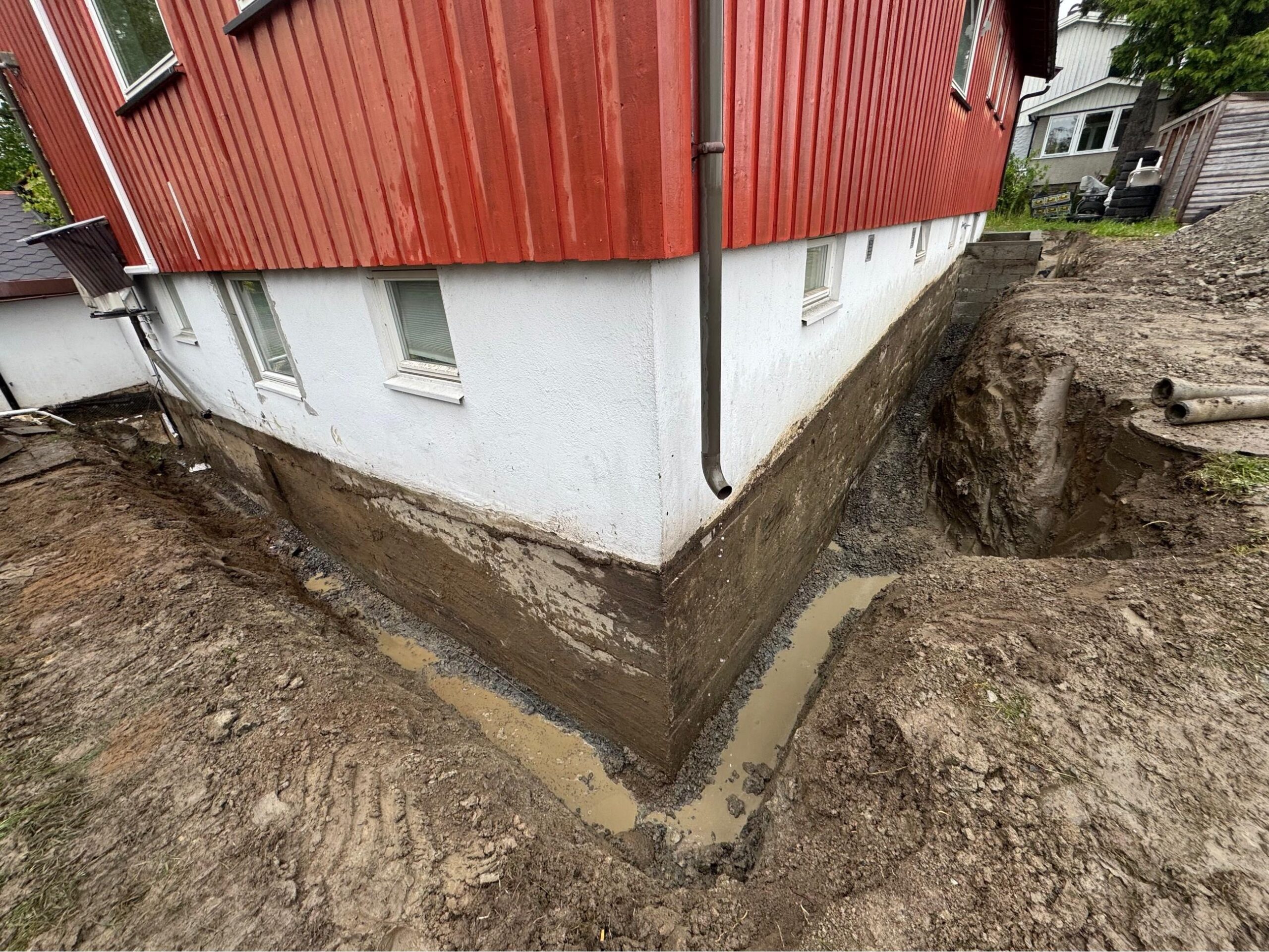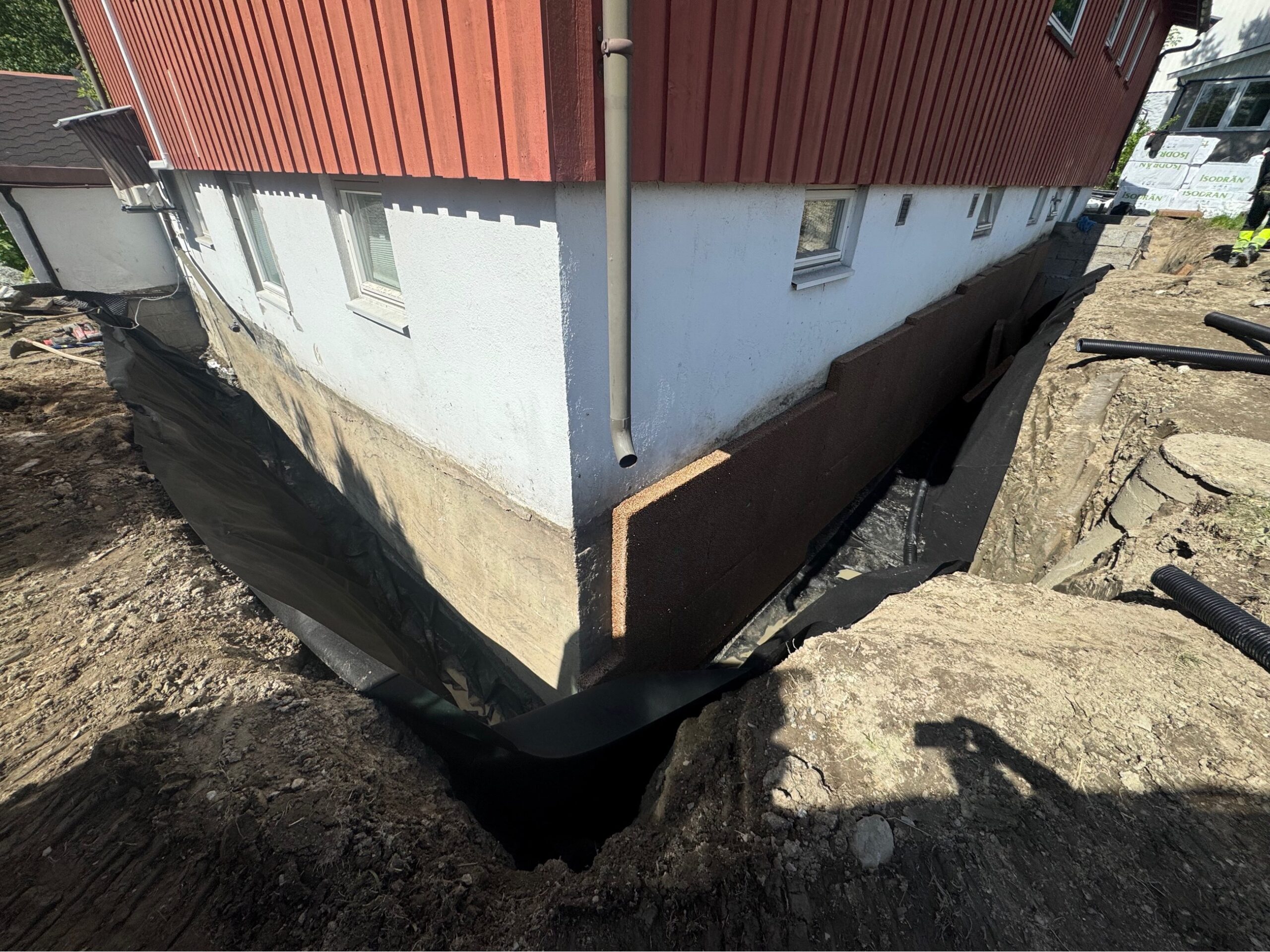 På dette prosjektet i Oslo hadde huseier utfordringer med fukt i kjeller. Vi utførte en komplett drenering rundt boligen med Isodren-system for å isolere, beskytte grunnmuren mot vanninntrengning og sikre ett tørt og sunt inneklima.